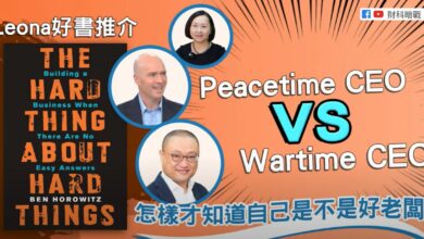 【財科暗戰】Leona好書推介:The Hard Thing About Hard Things Peacetime CEO vs Wartime CEO 怎樣才知道自己是不是好老闆?